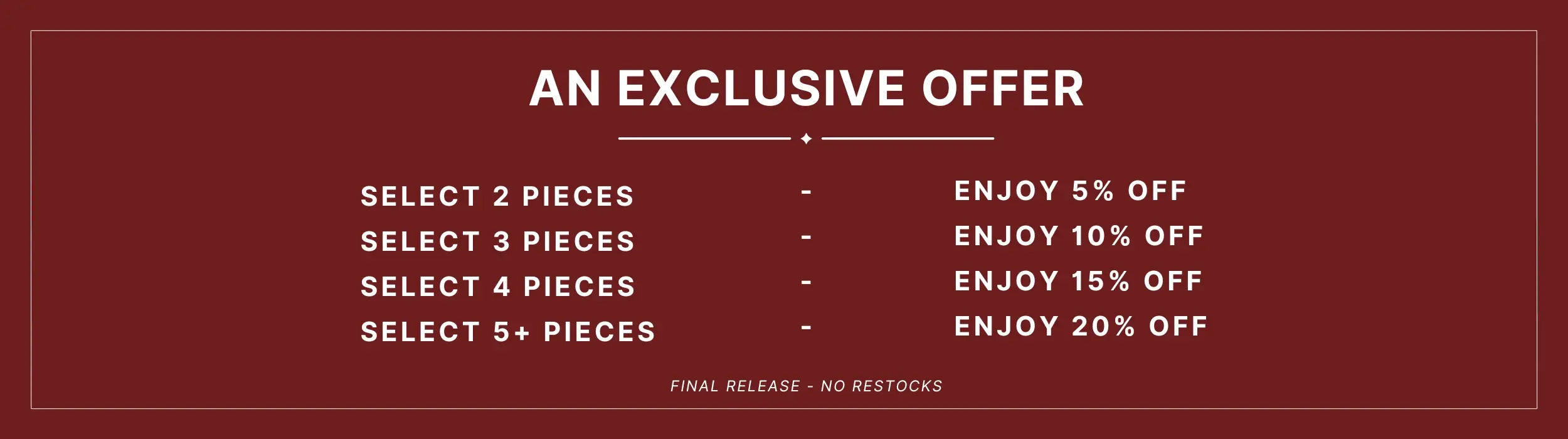 A first and final opportunity to own these exclusive pieces at exceptional prices—prices never offered before. These items will never return, available only while stock lasts.